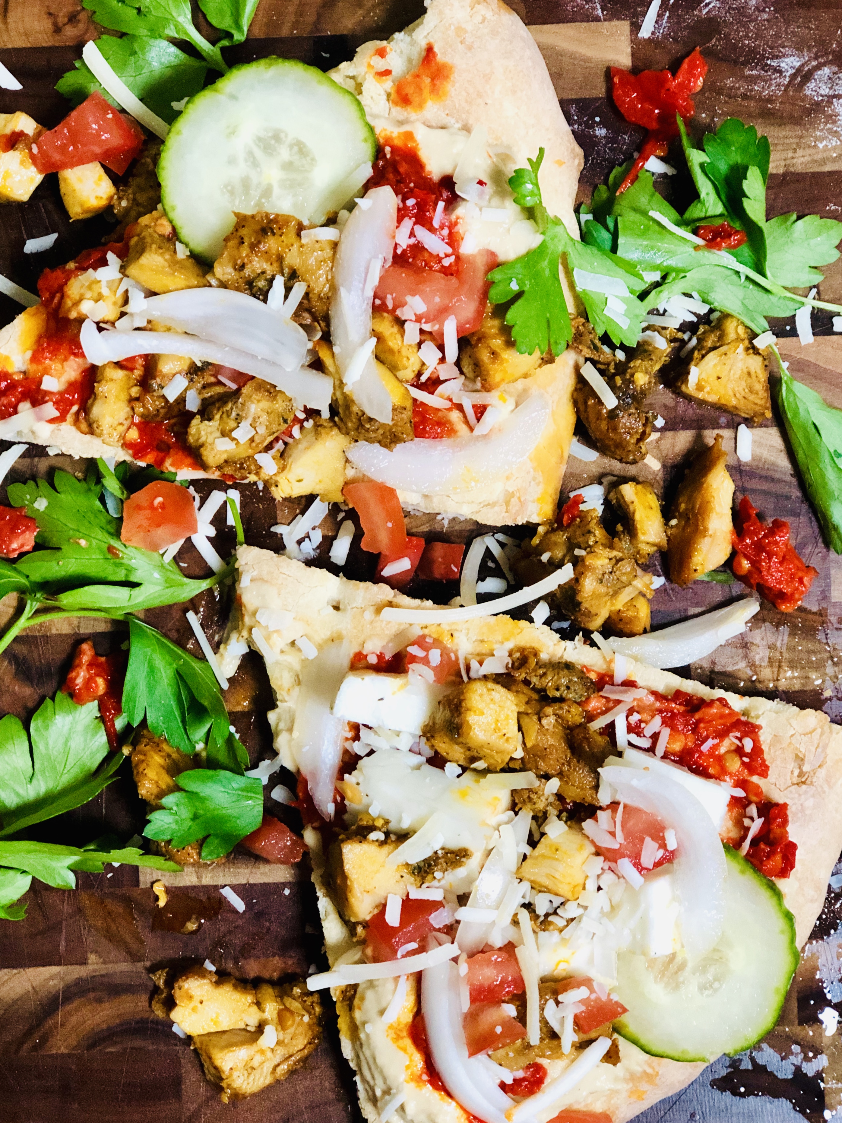 Making fusion style recipes is something I truly enjoy doing. This allows me to take something from my culture and combine with western food. When I asked Ryan one night what he wanted for dinner, he said he was in the mood for Pizza. He is always in the mood for pizza. So, I have to get creative because I don’t like eating the same thing over and over again. This time, it was time for the Middle East to meet the West.