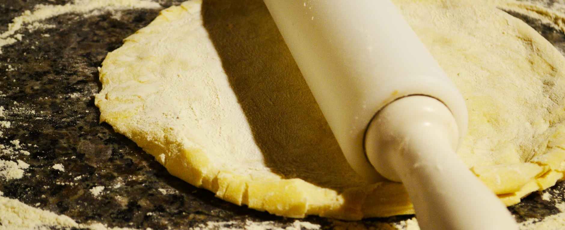 Flour the surface you will be rolling your dough on. Roll out dough and place on to baking sheet or pizza stone. Poke with a fork to avoid air bubbles when baking and drizzle with olive oil. Bake for 5 minutes.
