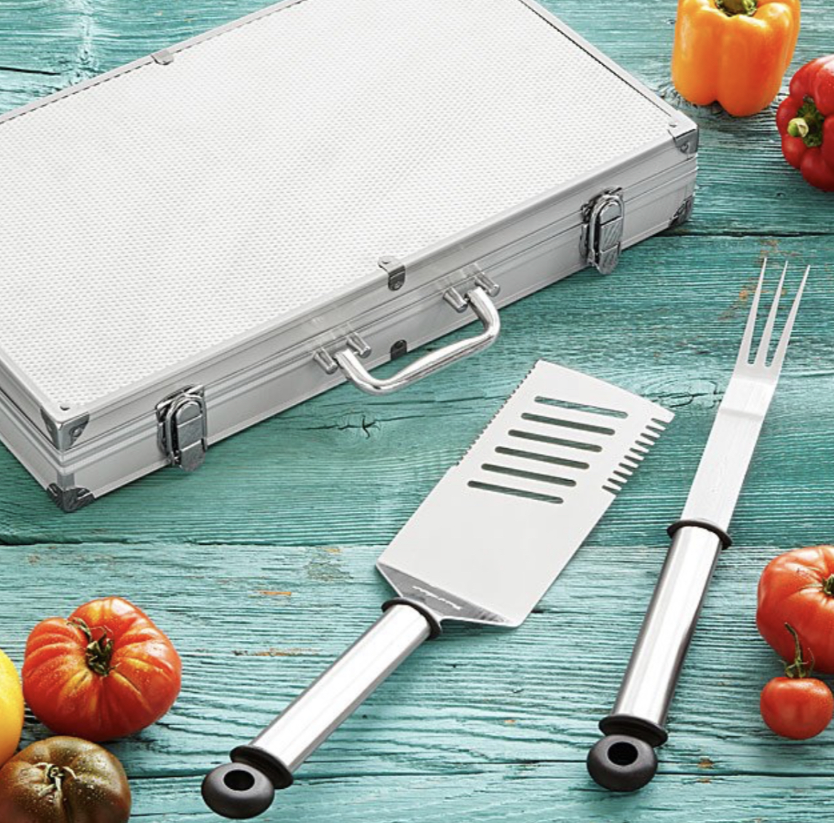 Spring and summer are only a few months away. Whether you are having a cookout at our house or at the beach/ park, this portable BBQ briefcase set with stainless steel utensils will make your man look like a master chef.