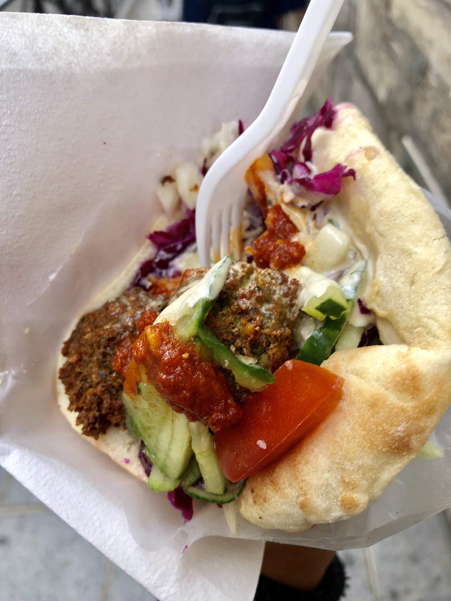 If you are looking for something other than French cuisine, another great place to grab a bite is L’aus du falafel. I know, falafel in Paris? Trust me, I grew up in Kuwait and I know what good Mediterranean food should taste like and I will say that L’aus du falafel did not disappoint. Le Marais just happens to have one of the old Jewish communities in Paris hence the great middle eastern food.