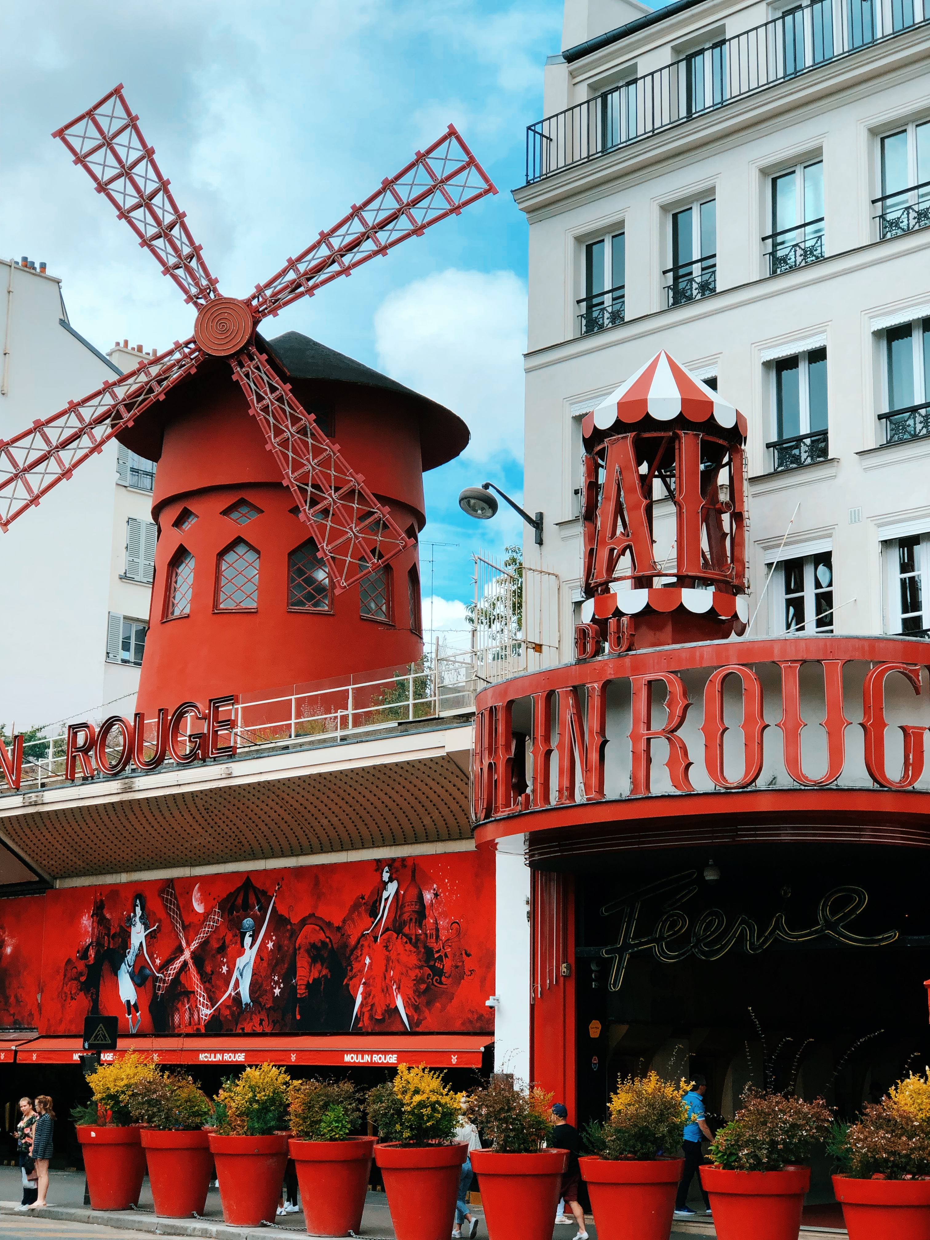 When getting off from the train station, right ahead you will find Moulin Rouge. We did not go to any show because it was a beautiful day out but we had it on our itinerary if it ended up being a rainy day.