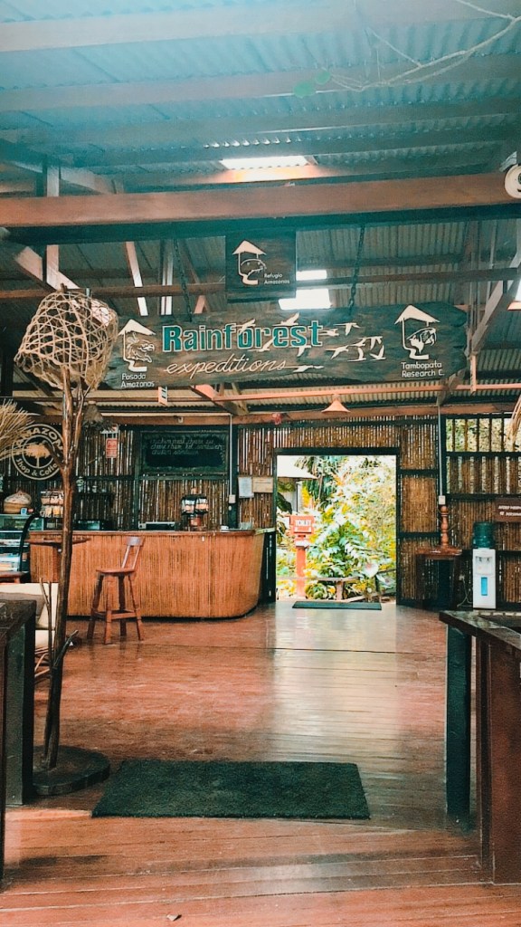 We stayed at an all inclusive eco lodge called the Posada Amazonas. They had a little minivan pick us up from the airport, took us to their check in center in the town and then a boat ride to the eco lodge which was a total of 2 hrs from the airport.