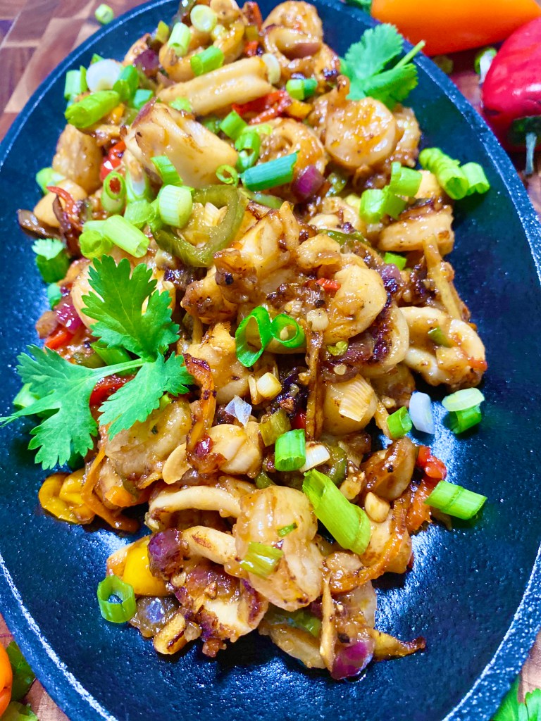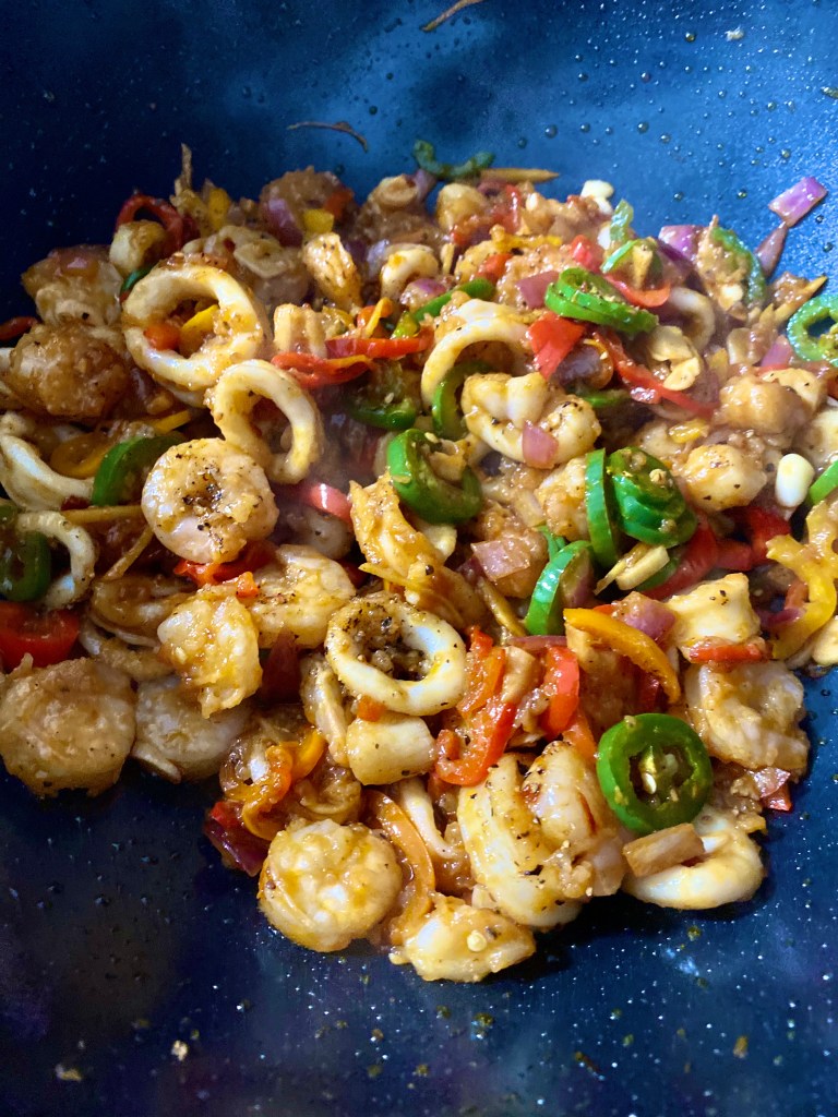 Bonus Tip: You want to ensure that all the sauces are absorbed into the seafood and it’s not watery. You also want to make sure that the seafood is not overcooked. Shrimp and scallops cook on a high flame within 3-4 minutes and considering you have already deep fried them you don’t want them sitting on the flame for too long or they will get chewy. Calamari is typically ready once it firms up.
