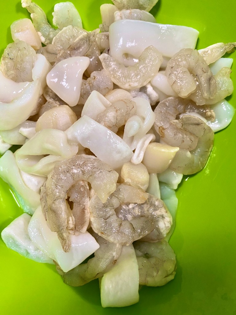 - 1 lb mixed seafood (I used scallops, shrimp and calamari)