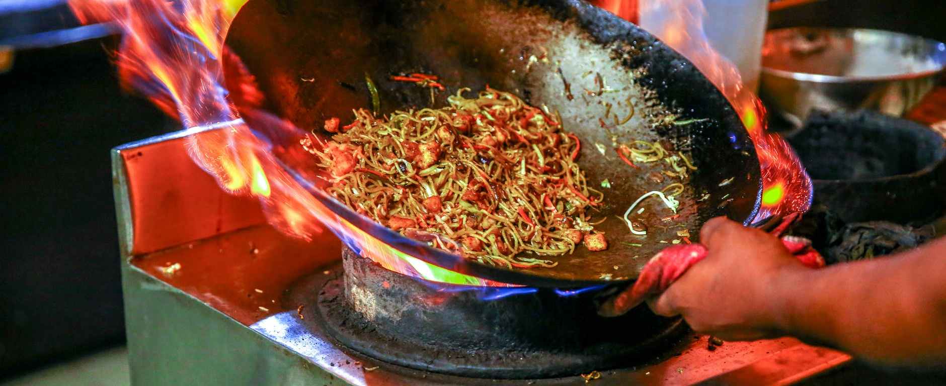 - In a wok and on high flame, heat some butter. Then add in the peppers, onions, jalapeño, ginger and garlic. Fry for about one minute tossing frequently. Add a pinch of salt to this while frying.